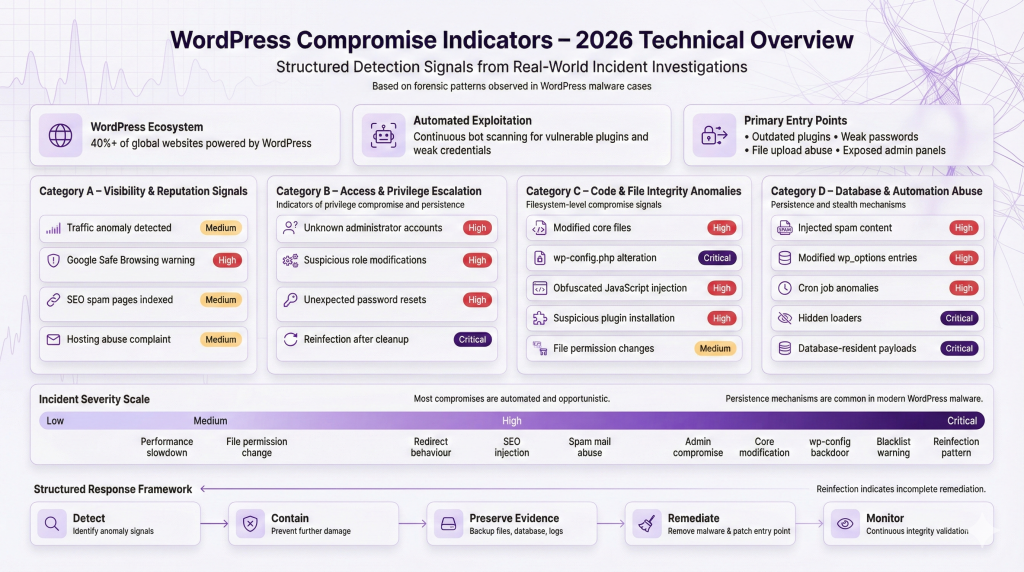 WordPress compromises are common, but they are manageable when approached with technical discipline.