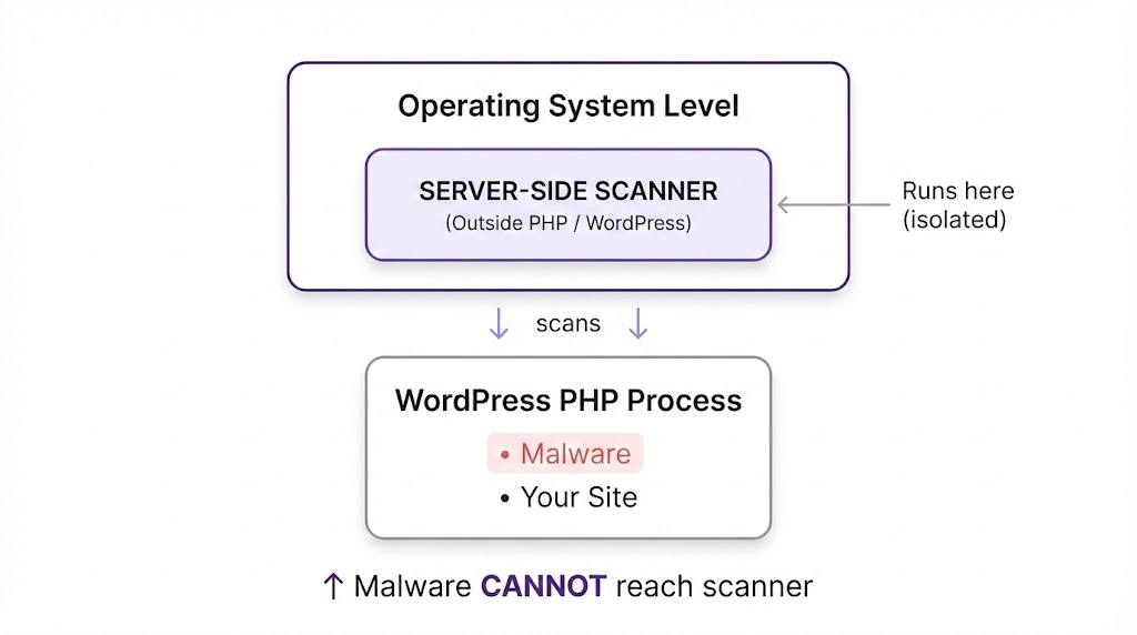 7. Server-side scanning works – Running outside WordPress makes tampering impossible